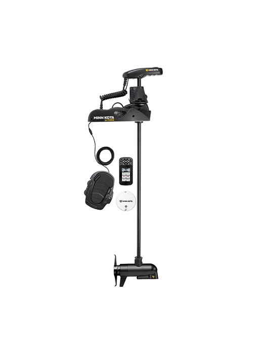 - What’s included: Ulterra 80 lb. 45″ motor with MEGA Down Imaging, i-Pilot Link Remote, Remote Charging Cable, USB DC Adapter, Lanyard, Heading Sensor, 30′ Ethernet Extension Cable, Corded Foot Pedal, MKP-33 Prop and Mounting Hardware.